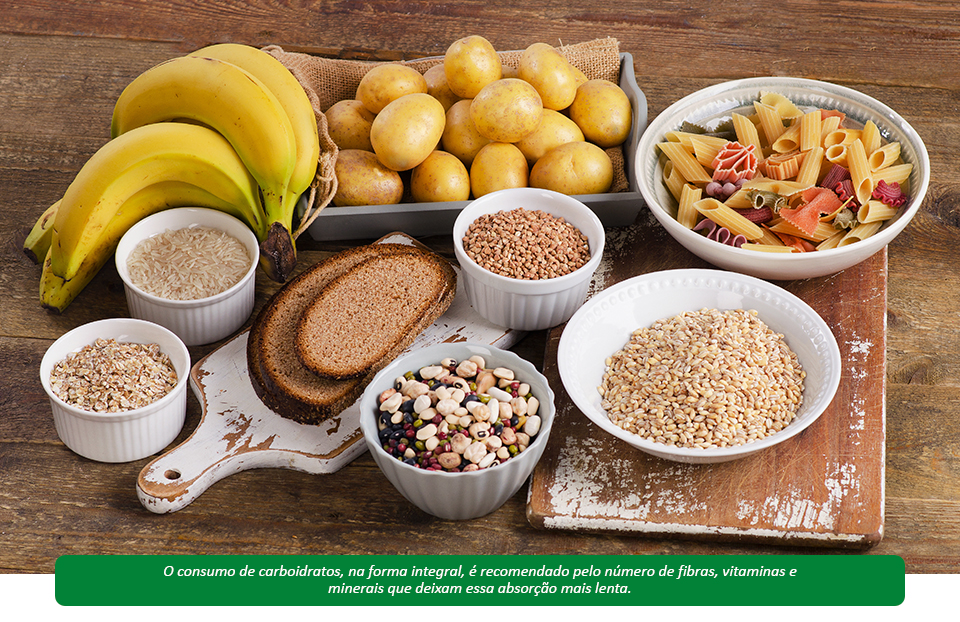As principais fontes de carboidratos são arroz, pão, batata, massa, mandioca, cereais, entre outros.