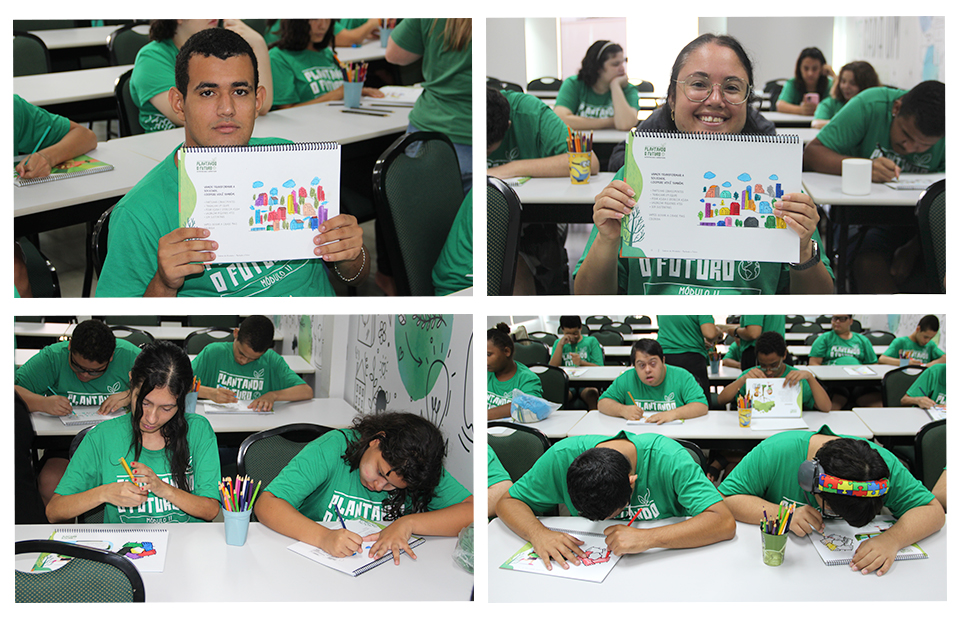 Durante a atividade, os estudantes participaram de uma dinâmica em que coloriram a imagem de uma cidade, reforçando de forma lúdica a ideia de que o crescimento coletivo depende da cooperação entre as pessoas.