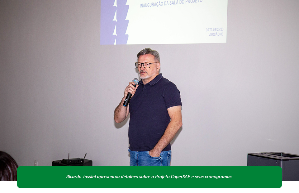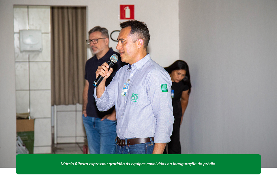 Márcio Ribeiro, coordenador do projeto CoperSAP, anunciou com entusiasmo a inauguração do novo prédio da equipe. Em seu discurso durante a cerimônia, Ribeiro expressou sua gratidão às várias equipes envolvidas e ressaltou o empenho da diretoria da Copercana. "Esse é um local que a gente está preparando há mais de um mês. Foram muitas horas de trabalho, na verdade, de várias equipes de RH, limpeza, engenharia, segurança, CFTV, informática, patrimônio, comunicação, enfim, praticamente todos que contribuíram para que hoje pudéssemos estar aqui e, consequentemente, dar sequência nos trabalhos do projeto", declarou Ribeiro.