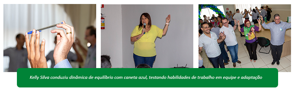 Ao final do evento, Kelly Silva, gerente de gestão de mudança organizacional da Nexta, conduziu uma dinâmica envolvendo os participantes em um desafio de equilíbrio com uma caneta azul. A atividade exigiu cooperação e coordenação entre os participantes, enquanto eles tentavam manter a caneta equilibrada apenas com as pontas dos dedos, em duplas. O objetivo era testar a capacidade de trabalho em equipe, a comunicação e a habilidade de se adaptar às mudanças rápidas de instruções.