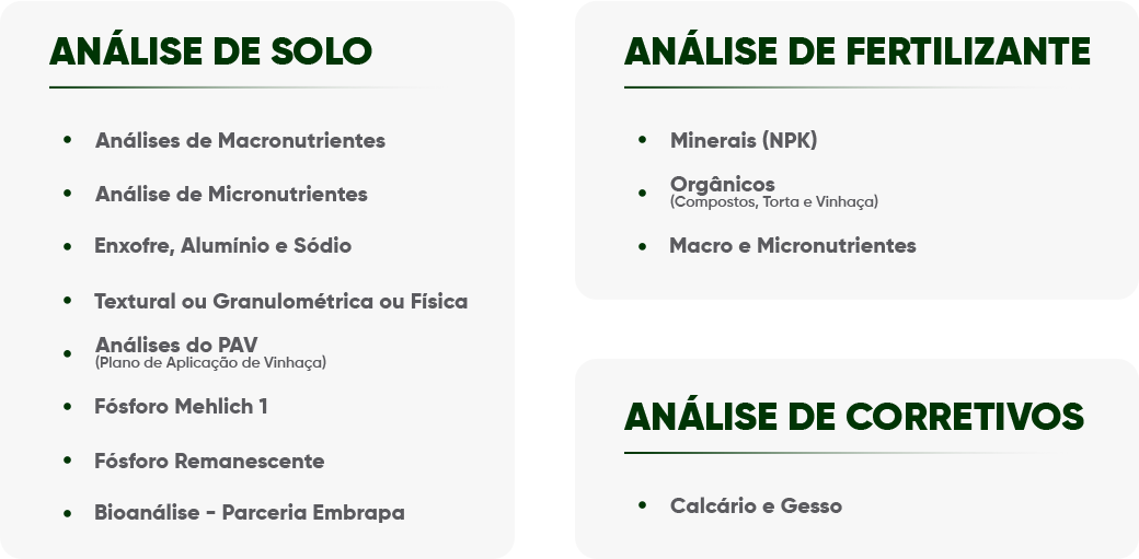 Atualmente, o Laboratório de Solos da Copercana executa as seguintes análises: