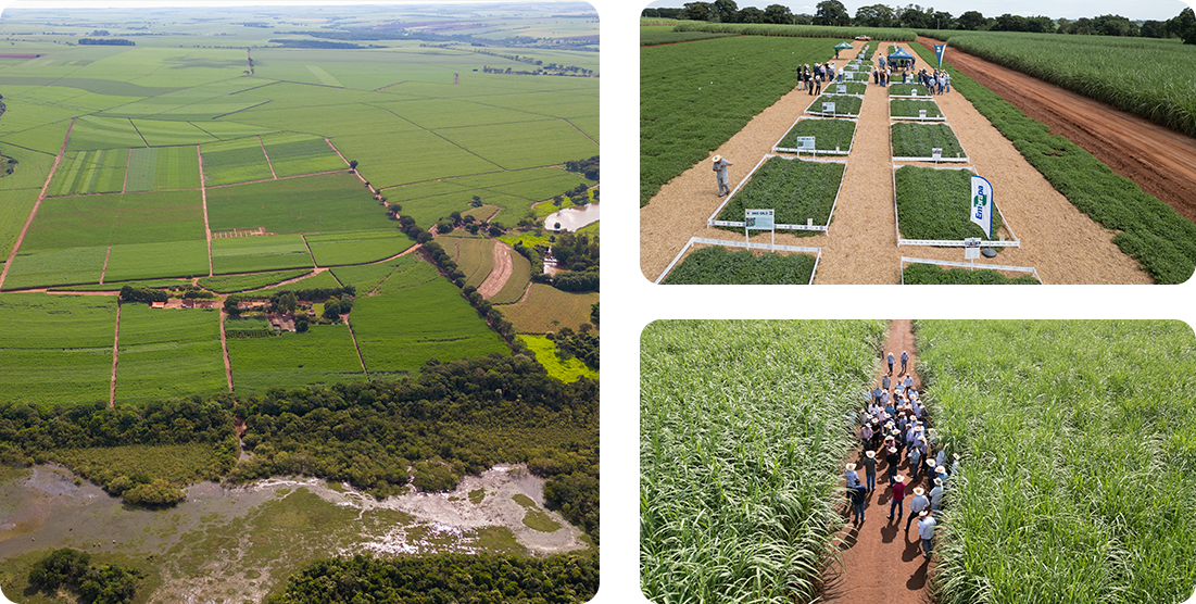 Também acontecem com frequência ensaios com pesquisadores e parceiros, em que são identificados novos manejos e tecnologias para cana-de-açúcar, amendoim e soja.